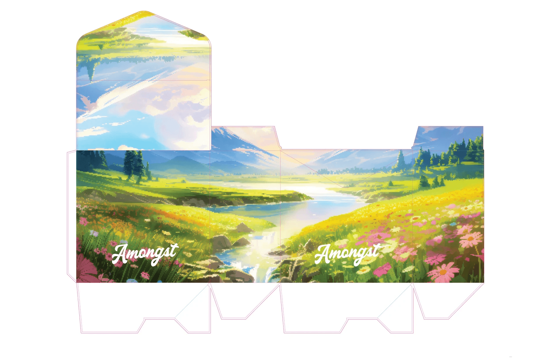 For the packaging, I really wanted to capture the essence of Amongst’s slogan - “For The Everyday” by developing a unique, full wrap landscape that was not only serene, but real, yet surreal through the use of subtle motifs.