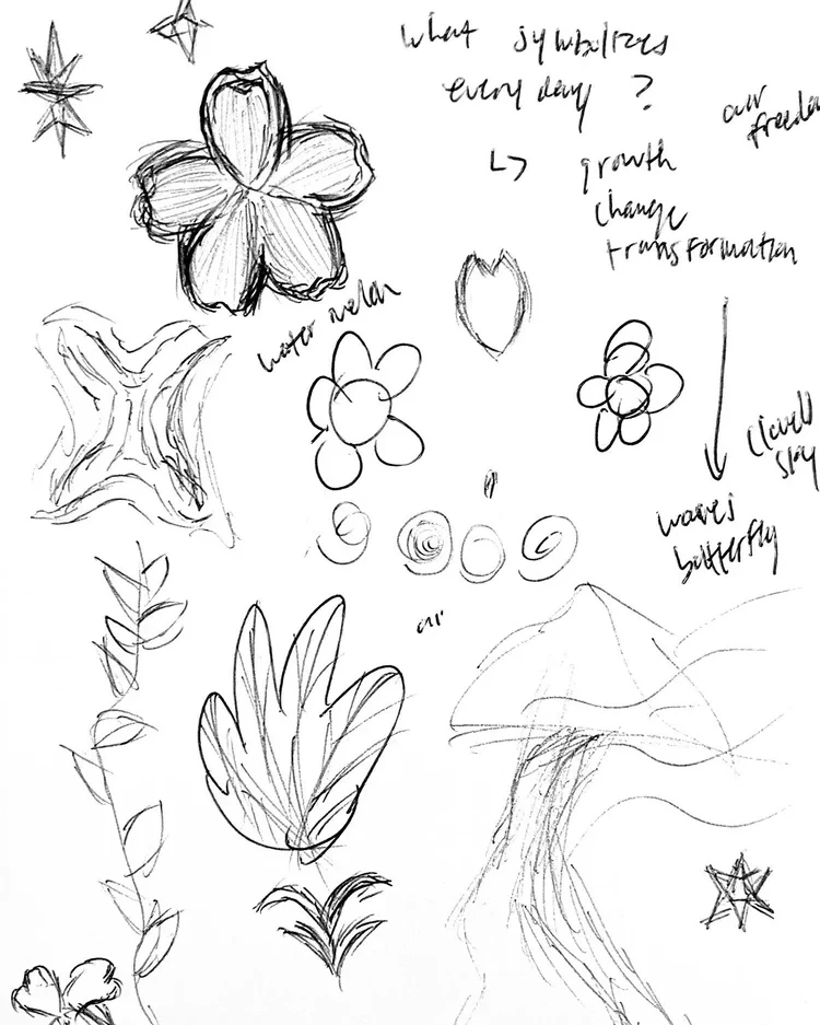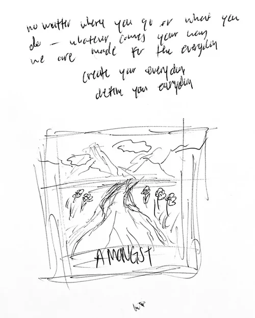 It started with initial rough sketches of various things that could symbolize “The Everyday” then with a quick sketch to blend those ideas together before hopping onto Midjourney to concept and visualize what it could look like and test how the artwork would need to wrap.