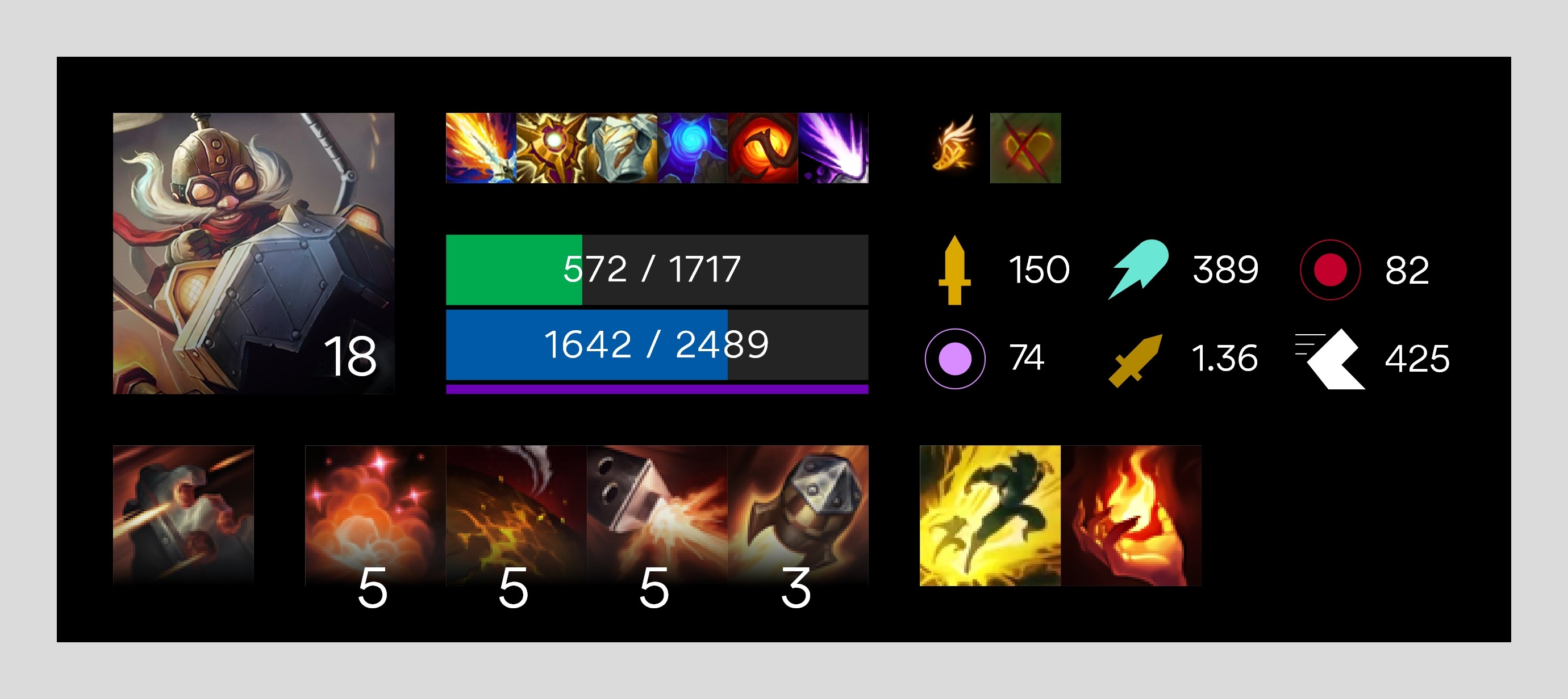 Compacted buffs under each teams' respective side with dragon stacking and dragon soul centrally and prominently placed as it is the most important and only permanent